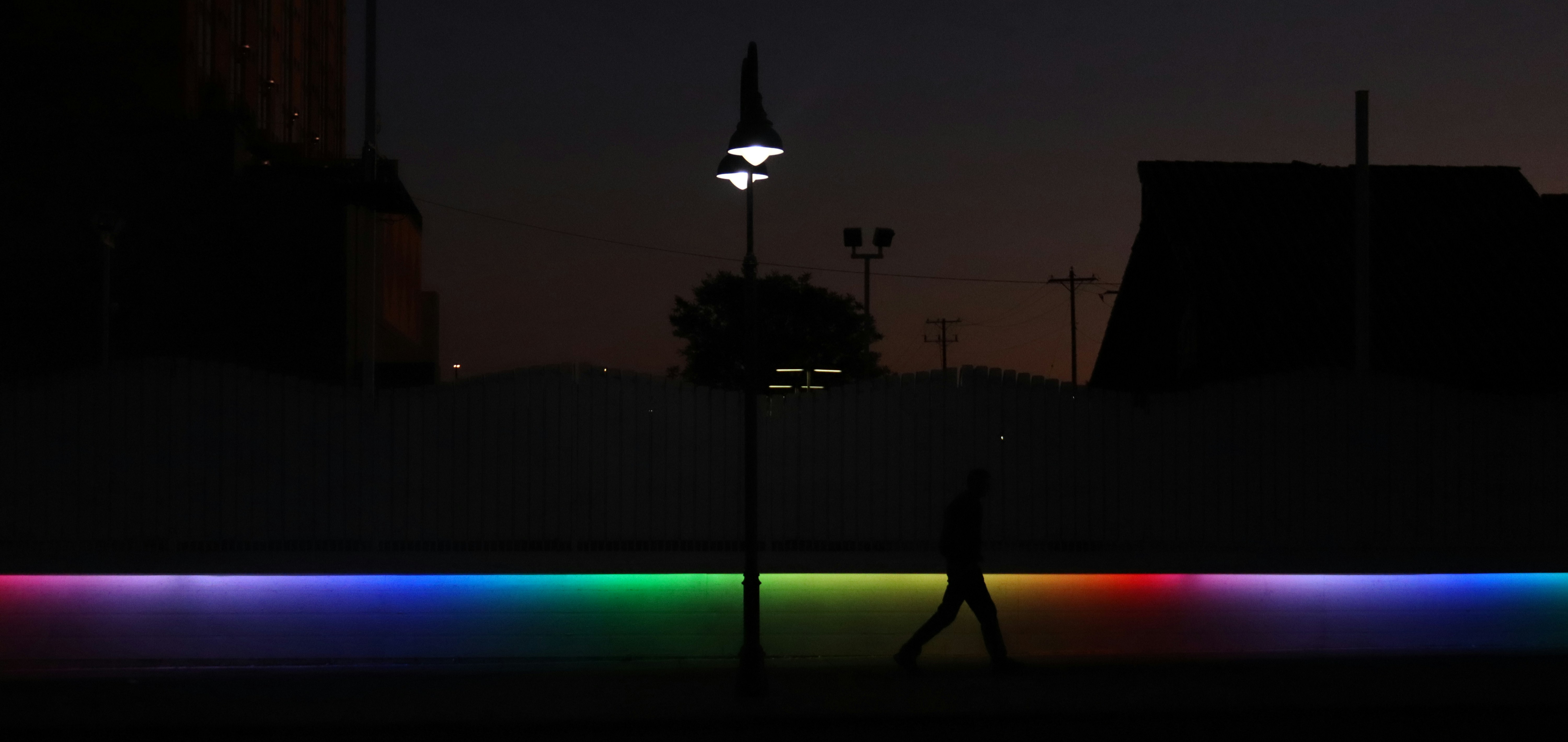 I noticed some new lights along a wall in the downtown Reno corridor the other evening while riding my bike. The lights caught my attention because they were configured to glow in a spectrum of colors.
